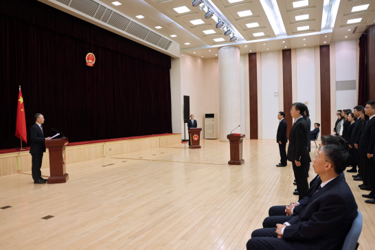 李云泽指出,当前金融监管总局系统正在深入学习贯彻党的二十届四中全会精神,举行总局机关新任职干部的宪法宣誓仪式,具有特殊的意义,既是对新任职干部的政治洗礼,更是对履行新时代金融监管职责使命的庄严宣誓。作为金融监管干部,要维护宪法权威,旗帜鲜明讲政治。深入学习贯彻习近平新时代中国特色社会主义思想,认真贯彻落实党的二十大和二十届历次全会精神,不断增强“四个意识”、坚定“四个自信”、做到“两个维护”。金融监管工作有极强的政治性、人民性,要始终坚持党中央对金融工作的集中统一领导,坚定不移走中国特色金融发展之路,更加自觉地把金融监管工作融入党和国家事业大局。坚守以人民为中心的根本立场,树立和践行正确政绩观,坚持监管工作为人民服务、对人民负责、受人民监督。要树牢法治观念,依法行政强监管。牢固树立“权由法定、权依法使”的法治理念,带头尊法学法守法用法,不断提升运用法治思维和法治方式化解风险、加强监管、深化改革、推动发展的能力。围绕“十五五”时期经济社会发展目标任务,加快推动金融立法修法进程,补齐监管制度短板,提升系统金融监管法治化水平。进一步规范监管执法,坚定维护金融市场秩序和金融消费者合法权益,不断增强监管威慑力。要增强纪法意识,廉洁从政守底线。在全系统坚定不移纵深推进全面从严治党,以高质量党建引领和推动监管工作高质量发展。牢记“权为公器、权有边界、权即是责、权受监督”,严格遵守党规党纪和廉洁自律各项规定,锲而不舍落实中央八项规定精神,推进作风建设常态化长效化,自觉构建“亲”“清”监管关系。加强对金融监管权力配置、运行的规范和监督,模范遵守党纪国法,始终保持清正廉洁的政治本色,切实锻造一支政治过硬、能力过硬、作风过硬的金融监管铁军。